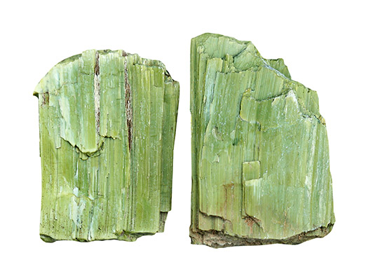 Кристаллическая структура подобных соединений (полевой шпат, волластонит) всегда столбчата, однако у актинолита, в отличие от его минеральных «родственников», иглы кристаллов не спрессовываются в ровные пучки, а расходятся в стороны – наподобие перьев в опахале или спиц в зонтике.