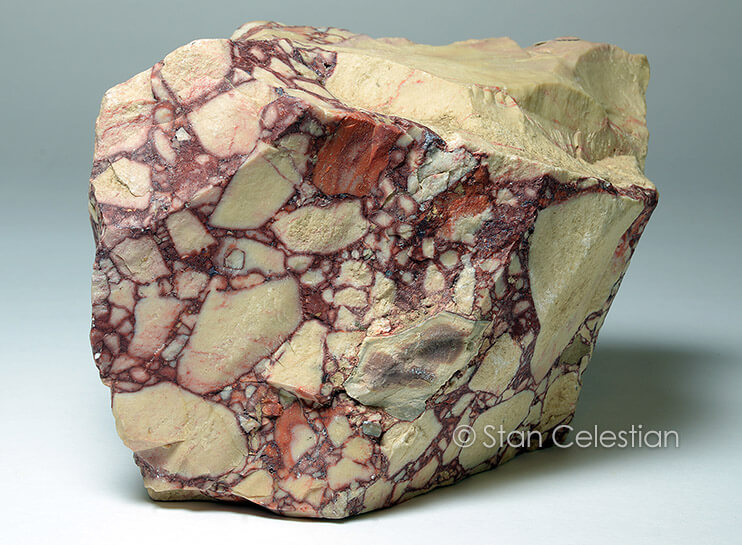 Брекчии слагаются остроугольными, «свежими» осколками одного или нескольких минералов. Размер осколка в брекчии – не менее десяти миллиметров.