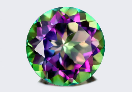 мистик-топаз переливается всеми цветами радуги – с преобладанием зелено-красного, либо сине-желтого, и даже коричнево-фиолетового!