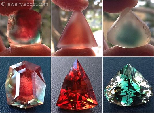 По словам мастеров-огранщиков, работать с орегонским солнечным камнем непросто. Особенно сложно создавать парные украшения – настолько уникален каждый самоцвет, добытый в Орегоне. Поскольку крупные шпаты нередко пронизаны трещинами, их распиливают перед огранкой. Поэтому ограненные солнечные камни массивнее 10-ти карат (особенно высоко ценимого зеленого тона) – редкость.