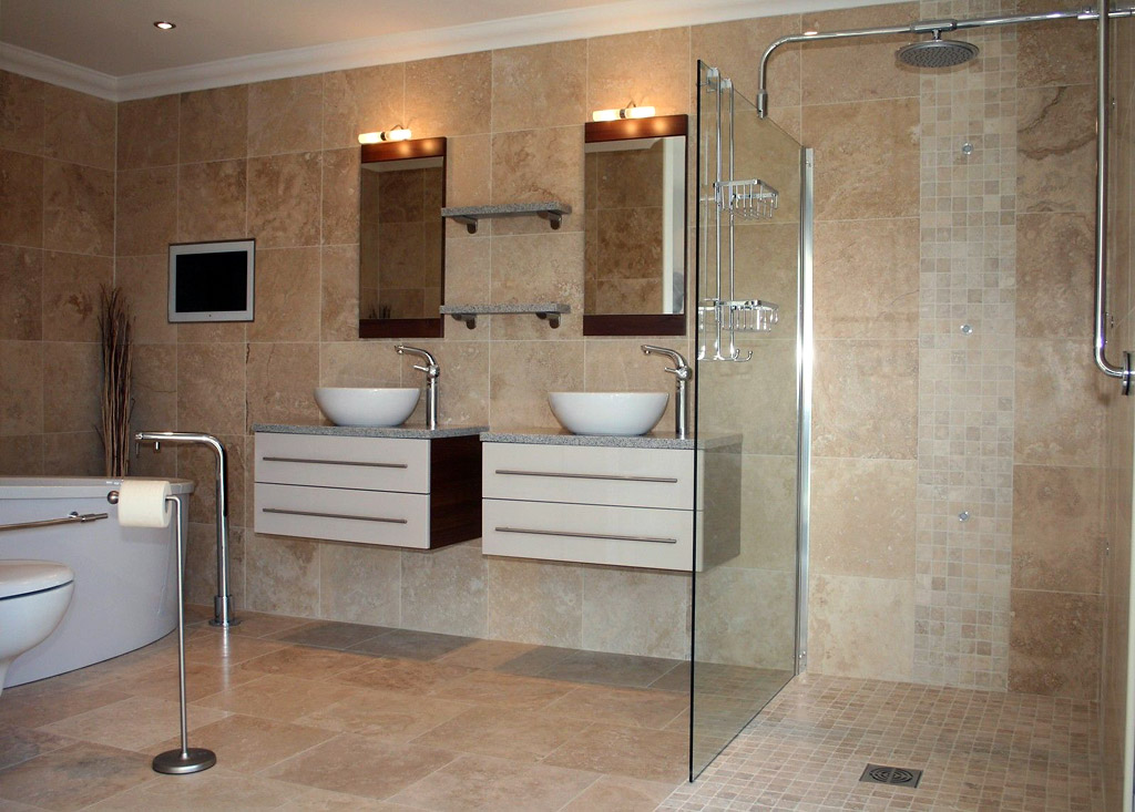 Мокрый и даже намыленный травертин не скользит. Поэтому минерал весьма широко используется в строительстве ванных комнат, бассейнов, бань, СПА-центров.