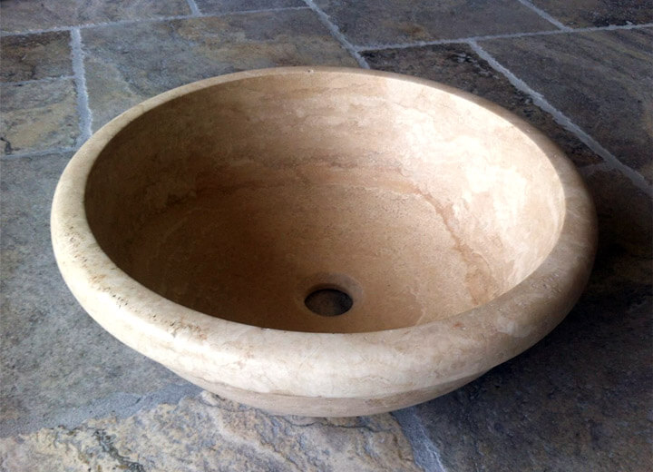 Уход за травертиновыми изделиями заключается в тщательном очищении поверхности камня неагрессивной бытовой химией, жесткими мочалами и металлическими щетками.