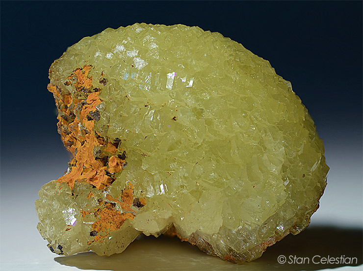 Природная окраска адамита – яркие, сочные оттенки желтого, желтовато-коричневого и желто-зеленого цветов. Встречаются, однако, и бесцветные, и розоватые, и лиловые, и буроватые адамиты неровной окраски. Обилие меди, частично или полностью замещающей в молекуле вещества атомы цинка, делает адамит ярко-зеленым с легким голубым оттенком, но ослабляет характерный стеклянный блеск.