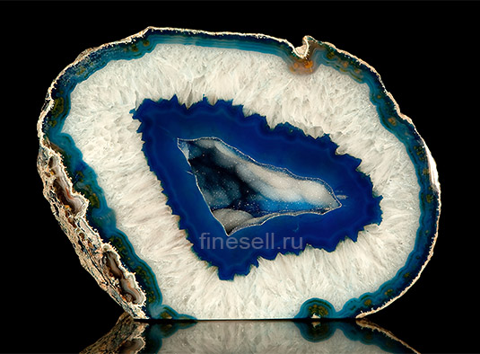 Коллекционные образцы самоцветного камня тем дороже, чем интереснее форма предлагаемого экземпляра. Распиленная и отполированная миндалина (полость в горной породе), в которой отложились кремнеземные осадки термальных вод, нередко выглядит весьма впечатляюще. Цена такого агата может достигать нескольких сот долларов – особенно если на халцедоновой подложке наросли сростки кристаллов