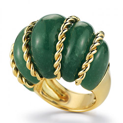Имитации из авантюрина выглядят ярче и "наряднее" природного камня. Не менее эффектны и их коммерческие названия: синий и черный авантюрин называют "Ночи Каира", а красно-бурый - "Золотой песок". Авантюриновое стекло часто оправляют в золото.