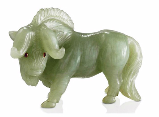 Выполняя заказ британской королевской фамилии, в мастерской Фаберже изготовили большую коллекцию статуэток, изображавших животных. Добродушный бычок, игриво помахивающий хвостом и тянущийся к наблюдателю круторогой головой с