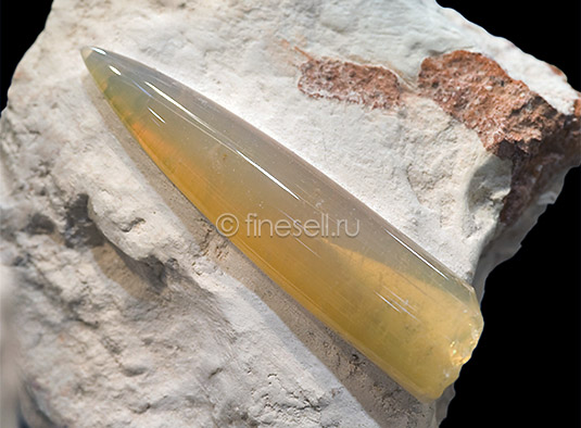 кальцитовое образование янтарно-коричневого тона, прекрасно поддающееся полировке. После даже минимальной механической обработки полупрозрачный чертов палец выглядит презентабельно!
