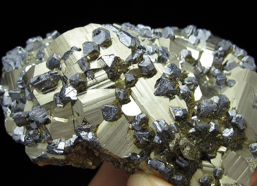 Потрясающий кластер кристаллов галенита на кристаллах пирита. Образец добыт в Перу. Вес около 600 грамм.