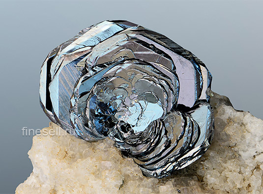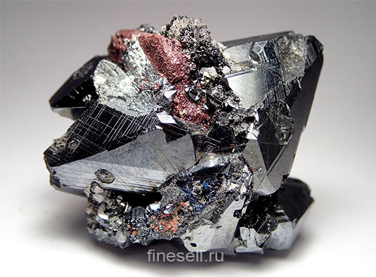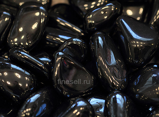Кристаллы гематита плоские, таблитчатые, непрозрачные. В зависимости от наличия и концентрации примесей, окраска гематитового кристалла может колебаться от темно-серого до черного. Блеску отполированного гематита характерен синеватый металлический отлив, который и сообщает камню высокие эстетические свойства.