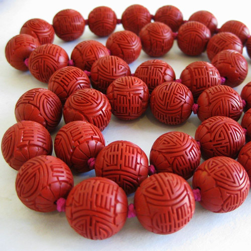 Киноварь – минерал достаточно пластичный, чтобы позволить камнерезам создавать ажурные узоры на поверхности камня. Броши и медальоны, перстни и серьги, бусы и браслеты, выполненные из резной киновари, на прилавках не залеживаются!