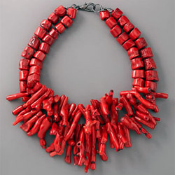 И только в конце XVIII в. ученые пришли к выводу, что кораллы - это внешний скелет полипов - беспозвоночных организмов, обитающих в море. Древоподобные ветви формируются в результате выделения полипами специфической известковой субстанции. Длина коралловых отростков достигает 40 см, толщина не превышает 4 см. Сырьем для крупных украшений служат места разветвления кораллов, где можно заметить значительные утолщения. На 85% кораллы состоят из твердого кальцита, оставшиеся 15% - это карбонат магния, окиси железа и марганца, органические соединения