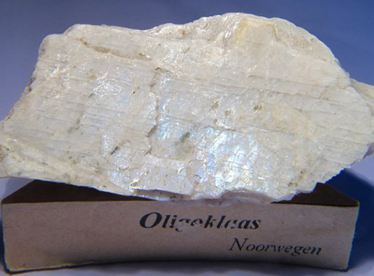 Для минералогических коллекций олиголазы окатывают в галтовку, а на стеллажах располагают упорядоченно, с соблюдением градиента цветности. Обширная коллекция олигоклазов охватывает чуть ли не весь диапазон цветовой гаммы и дает представление о месторождениях минерала в разных уголках Земли.