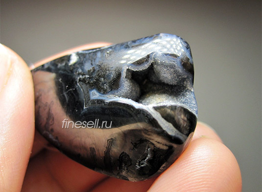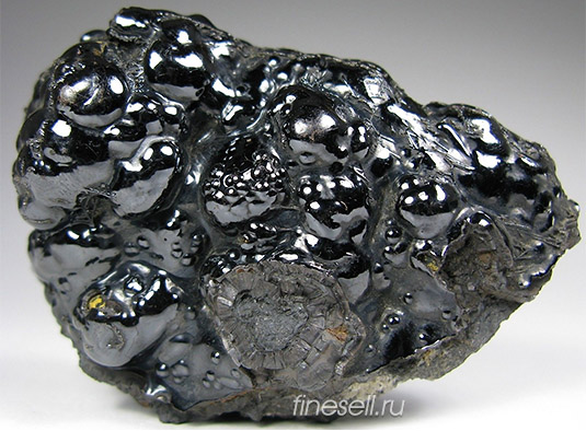 Натечный псиломелан плотен и тверд. Отполированный, он блестит подобно
