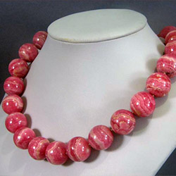 Полосатые родохрозиты обладают повышенным «быстродействием», однако глубина их трансцендентного воздействия не так велика. Тем не менее, именно такой материал является лучшим для четок или бус, тактильный контакт с которыми помогает достижению высшей степени просветления. Важно, чтобы размер бусин был достаточным, хотя и шестимиллиметровые шарики из родохрозита способны насыщать своего владельца силой.