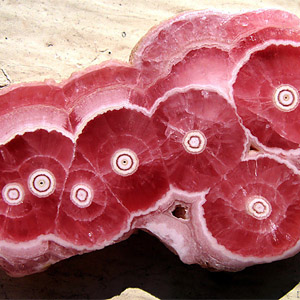 родохрозит: камень, в переводе с греческого, окрашенный как роза. Лучшие образцы родохрозита не только цветом, но и узорчатостью природного рисунка напоминают цветок розы. Правда, в зависимости от наличия и концентрации примесей натуральная красота минерала родохрозита может существенно пострадать: в присутствии железа марганец, дающий глубину нежных оттенков розового, буреет, становится грязно рыжим. Примеси кальция выбеливают камень, и при высоком содержании этого металла родохрозиты обретают неэстетичную белесость.