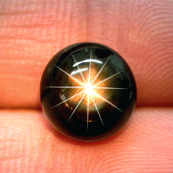 6- или 12-лучевая звезда, скользящая по поверхности камня при его повороте. Это свойство (астеризм) обусловлено включениями тонких иголочек рутила, ориентированных по определенным кристаллографическим направлениям, пересекающимся под углом 120°, либо наличием полых трубчатых канальцев, проходящих в кристалле в этих же направлениях.