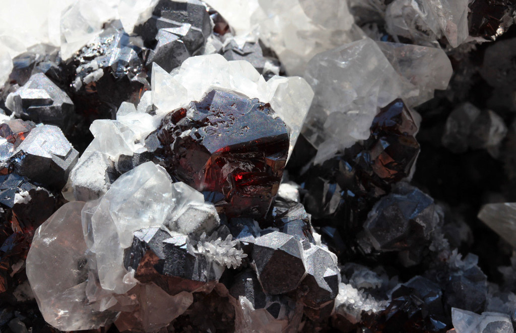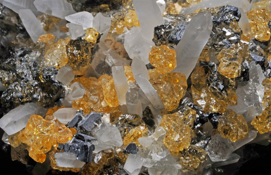 Красивое формирование кристаллов сфалерита по соседству с кварцем и галенитом. Догадаться, что есть что, совсем не сложно. Автор фотографии - Géry Parent.