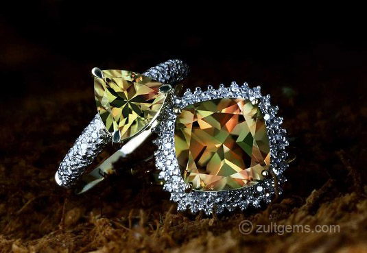 В изменчивой световой среде минерал, подобно хамелеону, становится разноцветным. Один и тот же перстень с султанитом может сиять травянистой зеленью и отсвечивать оттенками зерен обжаренного мокко. Серьги с султанитом на вечернем балу сверкают яркой желтизной, но в мерцании свечей будуара становятся золотисто-шоколадными. Ожерелье, при свете дня переливающееся оттенками хаки, в отблесках фейерверка способно стать откровенно рыжим!