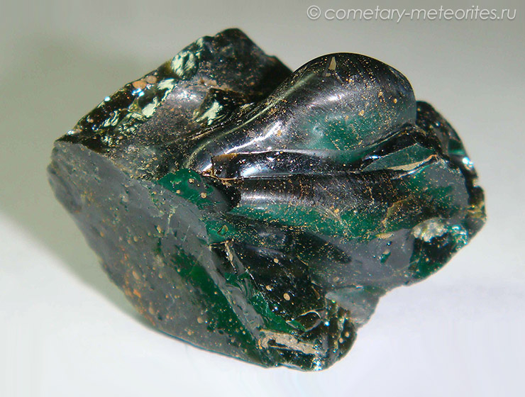 У силикатных тектитов космического происхождения имеется важная отличительная черта – минимальная, практически следовая концентрация воды в веществе. Исследования показывают, что содержание Н2О в космических тектитах не превышает 0,001% - и часто бывает десятикратно ниже. В земных же породах воды существенно больше, а зеленое (бутылочное) стекло серийного производства, из которого в странах третьего мира нередко изготавливают поддельные тектиты, содержит воды не менее 0,02%.