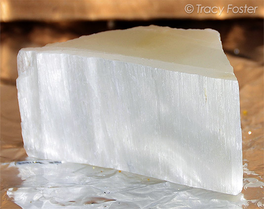 Полировать улексит приходится особенными мягкими абразивами – растертыми в пудру оксидом олова и окисью алюминия, причем делать это нужно периодически. С течением времени улексит теряет воду, из-за чего на поверхности камня образуется белый налет. Удаляется боратная патина шлифованием.