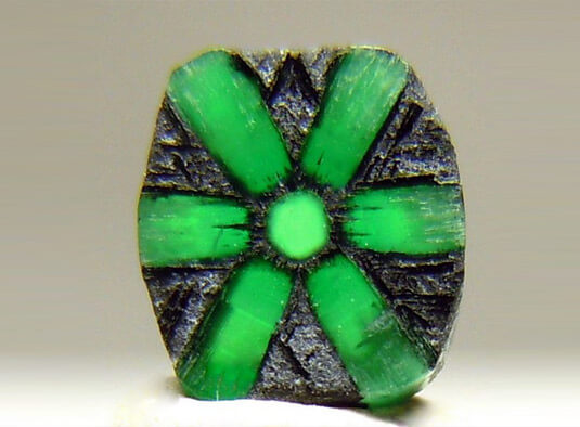 По прихоти случая, именно в местах использование прессов трапиче отыскиваются изумруды, строение которых делает их сходными с чугунными колесами прессов. Шесть толстых спиц, сходящихся в центре – вот отличительные признаки и изумрудов трапиче, и колес трапиче.