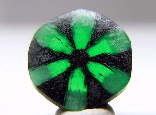 Неравномерность окраски изумруда – столь же известная отличительная черта камня, сколь и трещиноватость. В природе практически невозможно отыскать зеленый кристалл берилла, одинаково окрашенный по всей свой длине и напрочь лишенный трещин. Поэтому идеальным признается изумруд, у которого не наблюдается заметных невооруженным глазом повреждений и цветовых девиаций.