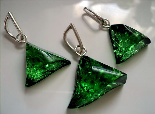 Мало того что производственники научились сообщать берниту признаки лучших сортов янтаря, они стали менять химический состав полимера так, чтобы массив отвердевающей искусственной смолы приобретал экзотическую окраску!