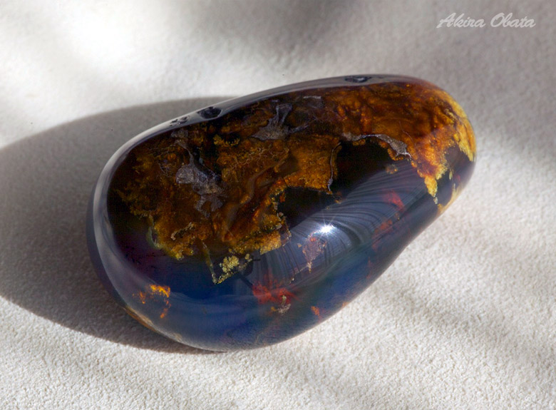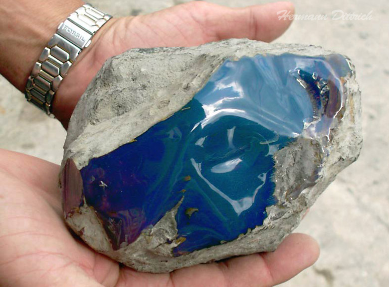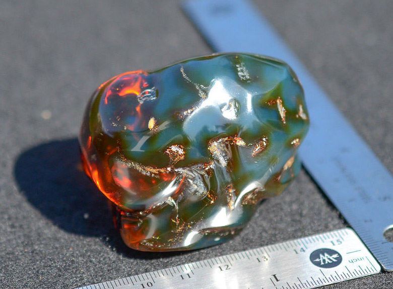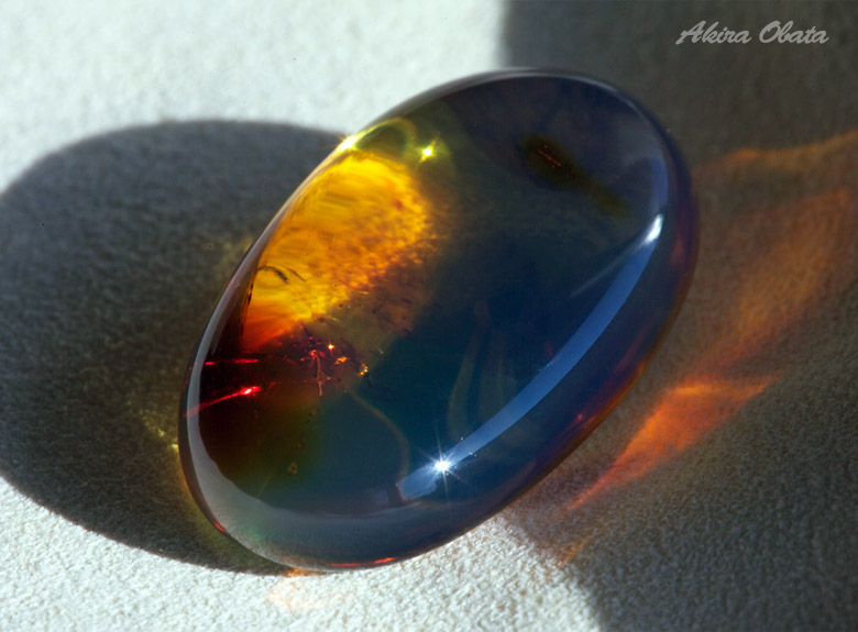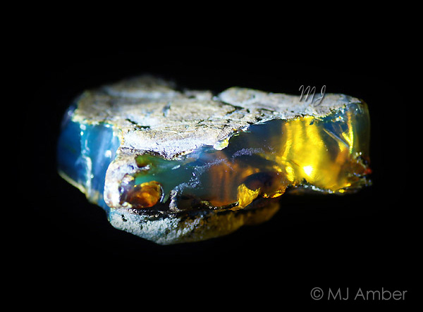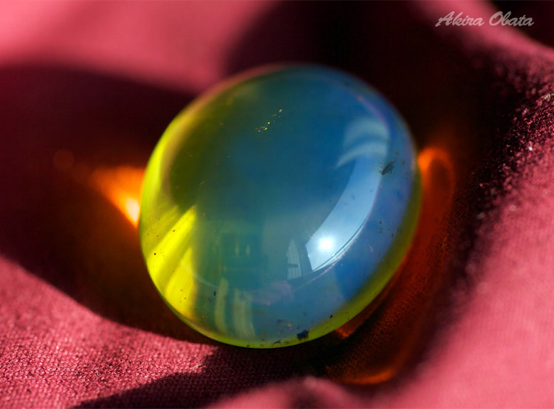 Голубой отсвет образуется при освещении камня под определенным углом. Неосведомленный покупатель может сильно удивиться, осмотрев купленный образец, который схож по цвету с балтийским янтарем. Такие сюрпризы случается, когда покупаешь камень ориентируясь по фотографиям.