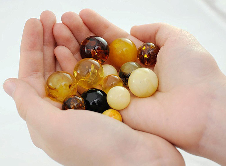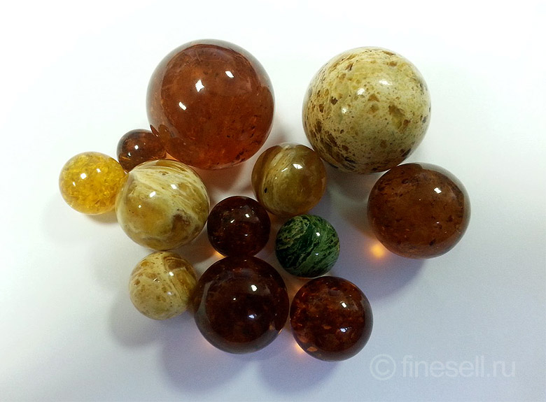 На фото – шарики из модифицированного, прессованного янтаря. Они не менее красивы, чем шары из натурального янтаря, однако их цена значительно меньше стоимости натуральных аналогов. Цена шарика из прессованного янтаря варьируется от 2-х до 6-ти евро за грамм в зависимости от цветности и декоративности.