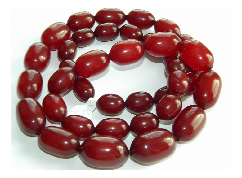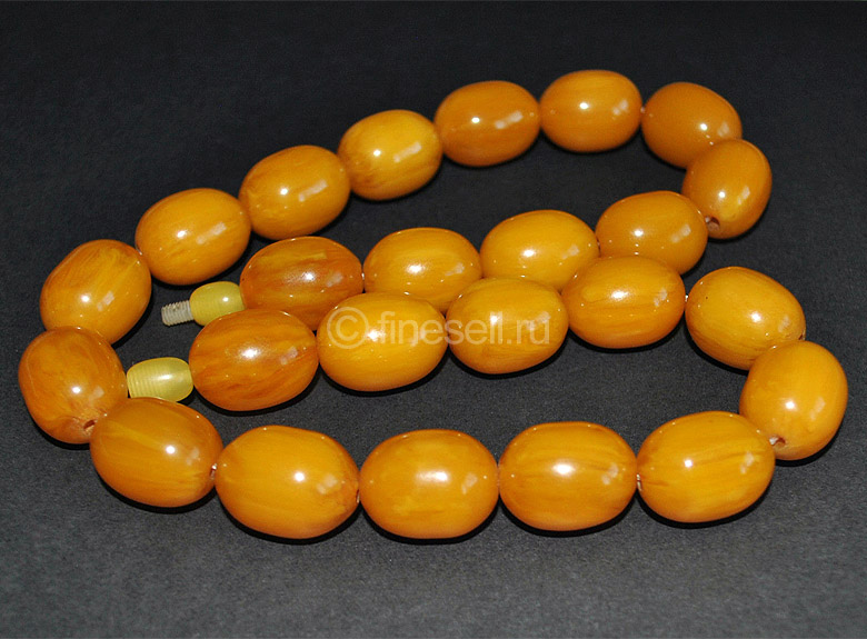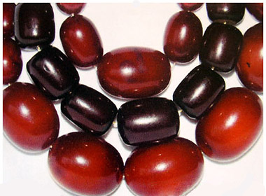 «Янтарные» бусинки, изготовленные из пластмассы, синтезированной из казеина. Казеин это белок обработанный формальдегидом.