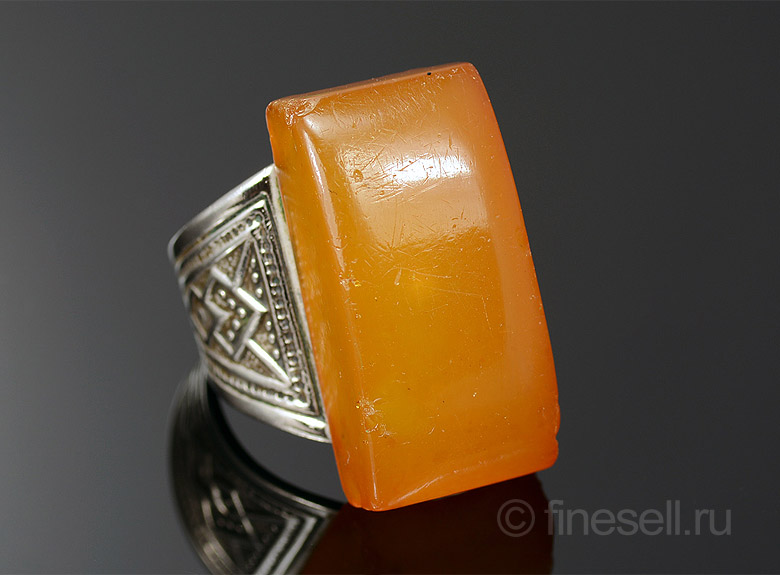 Серебряное кольцо с прессованным янтарем. Недорогое украшение советского времени, изготовленное в Латвии из материала, завезенного с Калининграда.