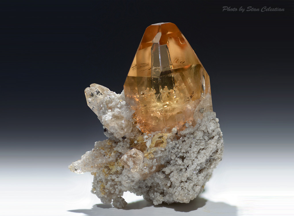 Не менее привлекательным цветом наделены топазы из американского штата Юта. Их по праву можно называть императорскими, хотя таким именем принято называть камни, добытые исключительно в Бразилии. Автор фотографии: Stan Celestian.