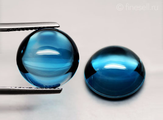 Благодаря своеобразию глубокого оцвечивания London blue, огранка топазов кабошоном позволяет наблюдать интереснейшие оптические эффекты. Полированный кабошон из топаза «лондон блу» обладает ярким блеском, живой изменчивостью и визуальной подвижностью.