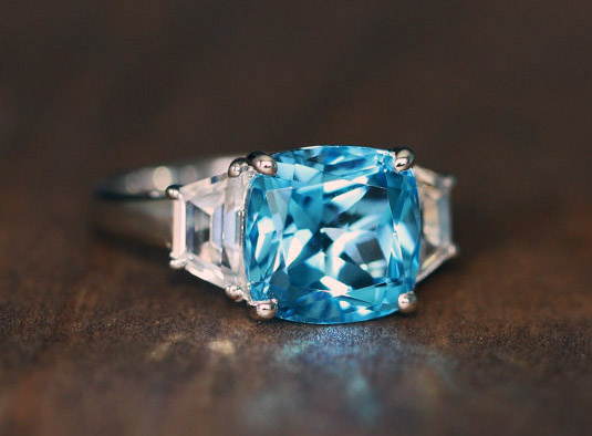 Талант ювелира и мастерство огранщика позволяют выявить красоту топаза Swiss Blue. переливаясь всеми тонами голубого, топаз приковывает внимание. Эстетичность и выразительность топазов Swiss Blue порой превозмогает магическую притягательность ещё более дорогих камней