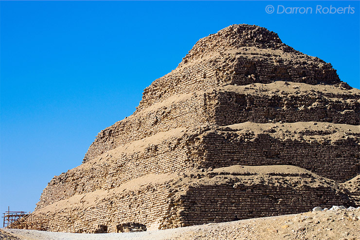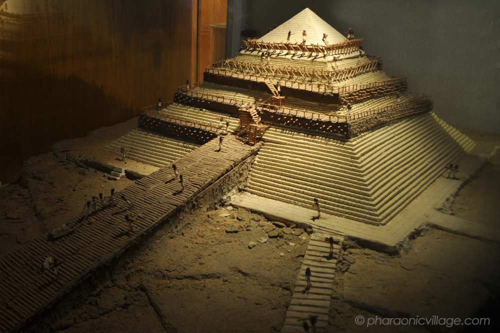 Глину копали в долине Нила, размачивали и смешивали с некоторым количеством песка (для предотвращения растрескивания в процессе высыхания). Стеновой камень укладывался с наклоном внутрь строения так, что линия стены отклонялась от вертикали на 15˚. Таким образом, стены каждого из ярусов гробницы образовывали с условной плоскостью земной тверди угол в 75˚.
